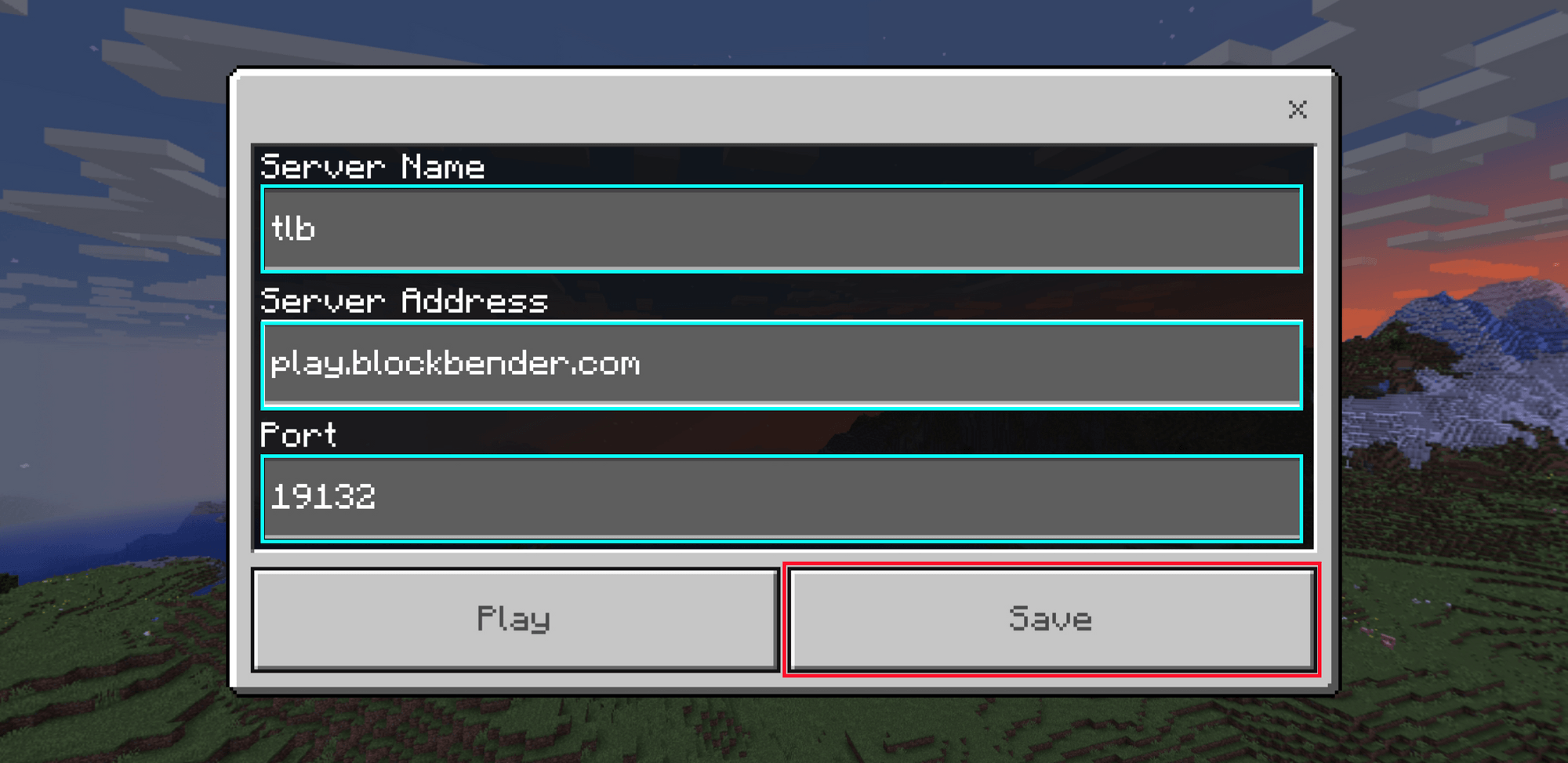 All you need to do is open up Minecraft on your device, enter the IP play.blockbender.com, enter the port 19132, and join the server. You can enter any name you want for the server.